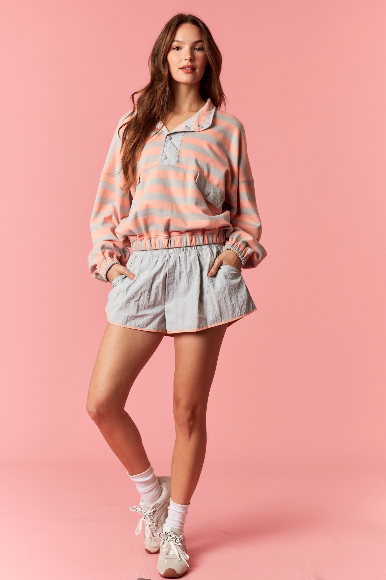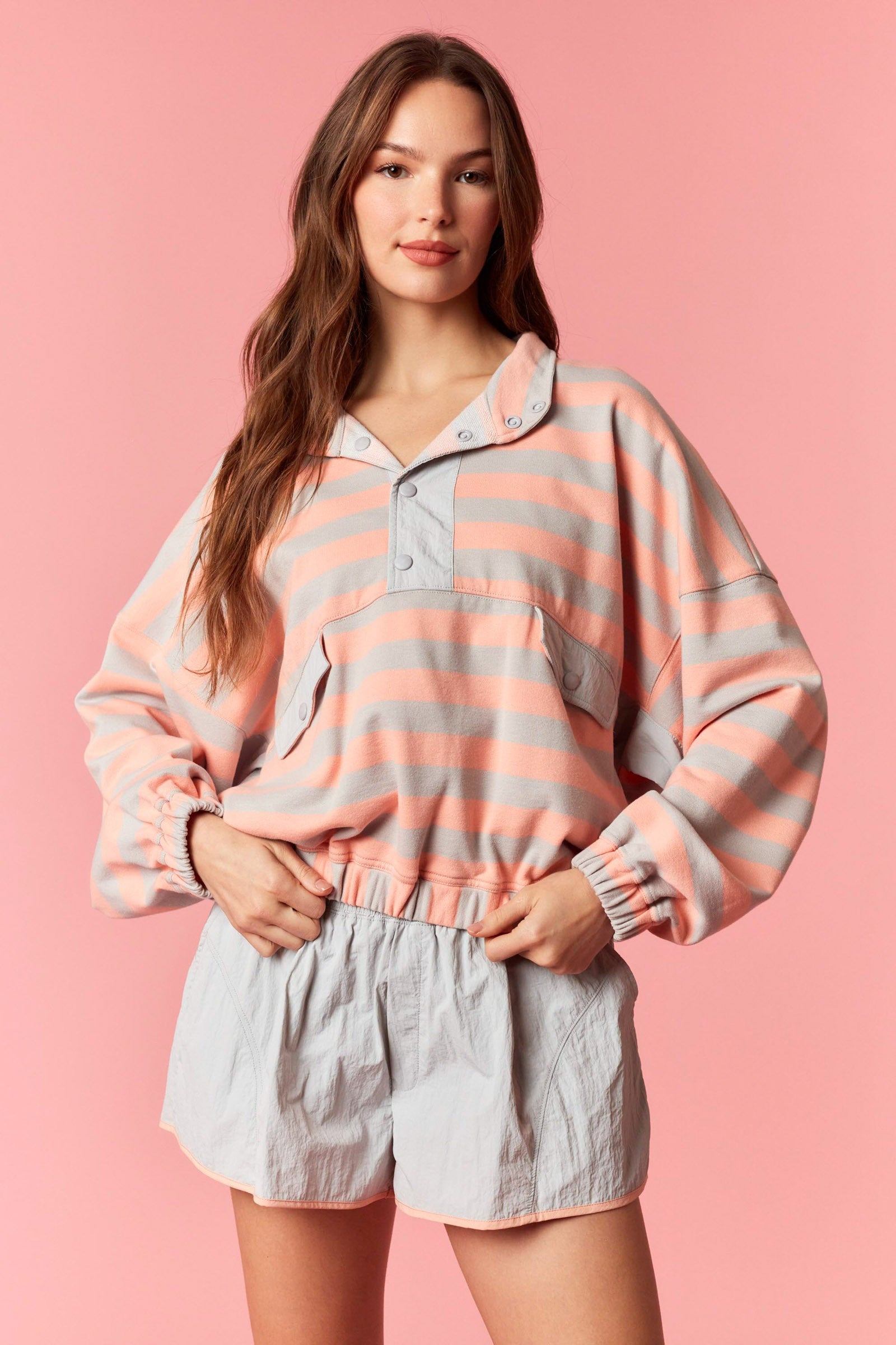 Grey & Salmon Stripe 1/4 Pullover